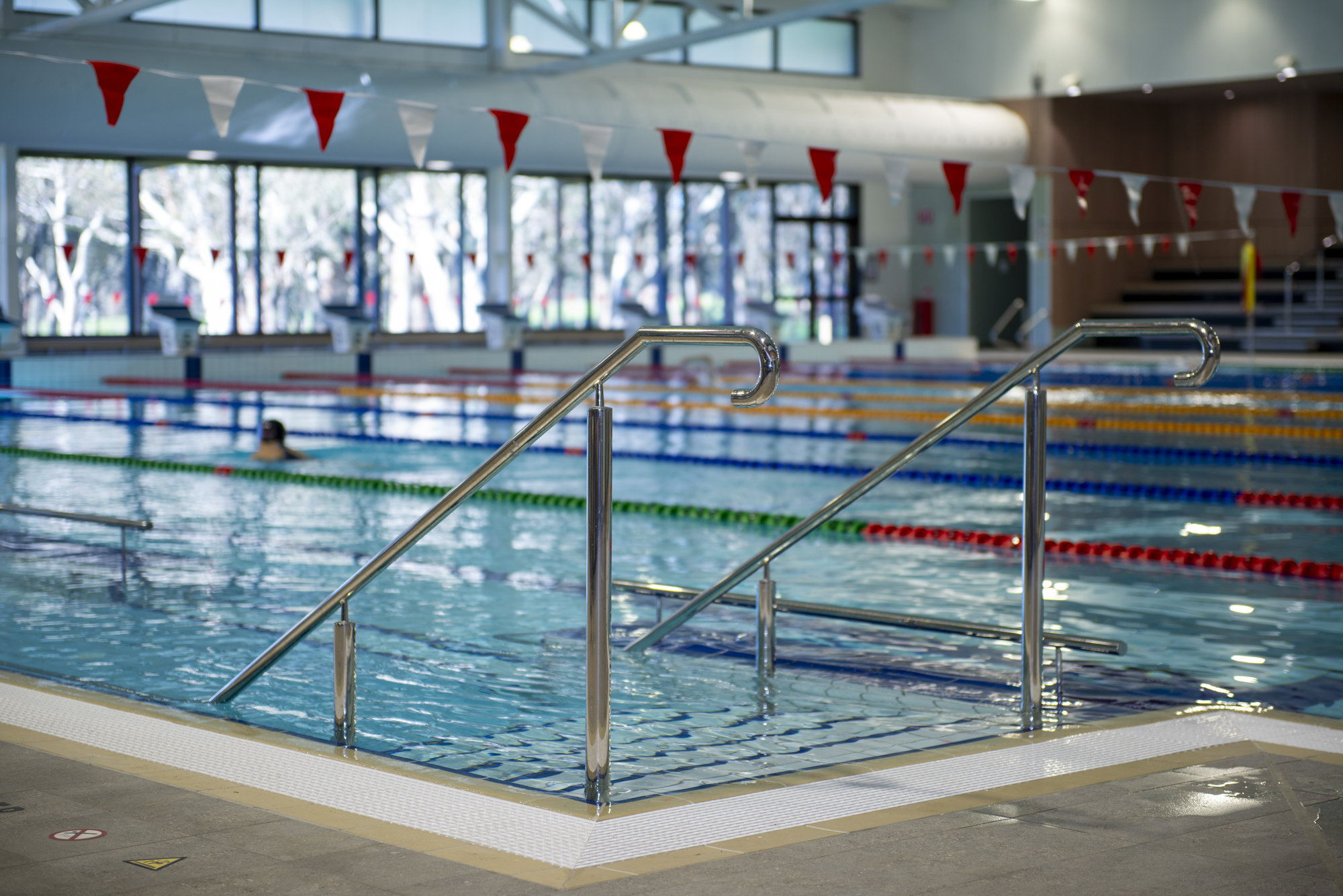 25 metre 8 lane heated pool with kids fun area,splash pad, sauna and recreational area.